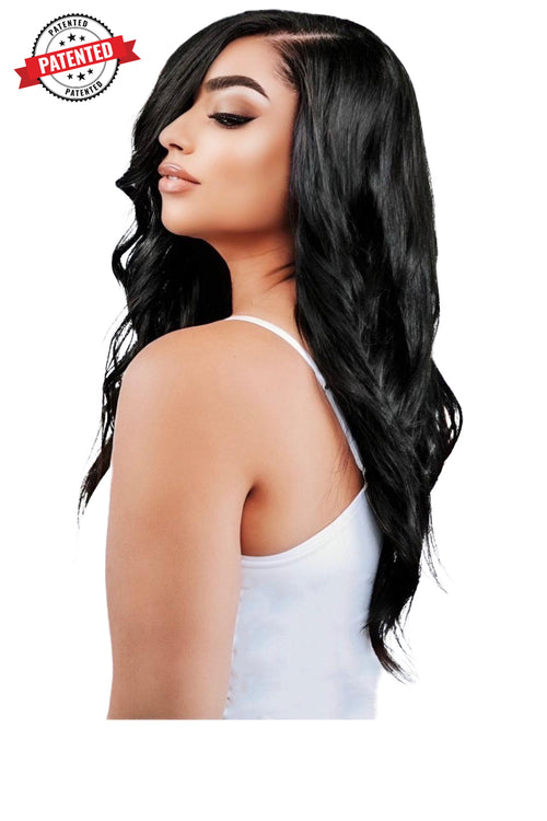 Introducing the Patented InvisiRoot Thin Part™ Wig. Launched in 2019, this revolutionary wig changed the game! Experience the freedom of wearing your real scalp with little little to no leave-out. Say goodbye to little lace holes & embarrassing wefts. Unlike imitation v- part wigs, our patented wig ensures a flawless, lump-free look that lays flat and mimics real hair roots. Thanks to our patented beginner-friendly installation, there's no need for a crochet hook – just clip it on & go within minutes! With a 100% breathable wig cap, bid farewell to sweat and itchiness. We've invented the perfect wig!