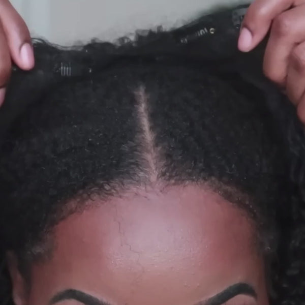 A u-part wig has a weft at the top which requires you to leave a large section of your own hair out in order to cover the weft. This requires you to blend a 3x4 section of you’re hair with the wig. This process can be difficult for some and restrictive for those who wish to wear multiple textures which may not be exactly the same as their own. Therefore it often does not look real as people can tell the difference between your hair and the wig.
